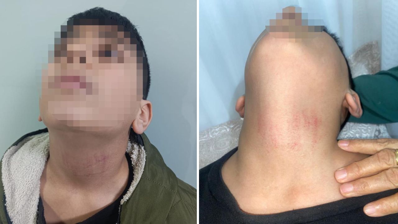 Öğrencinin babası Saruhan D., “Dün iki tane çocuk geldi, ‘Senin çocuğunu okulda bir memur darbetti’ dediler. Çocuk yanıma geldi, baktım boğazı morarmış. Dayanamadım, hastaneye götürüp darp raporu alıp, savcılığa suç duyurusunda bulunduk” diye konuştu.